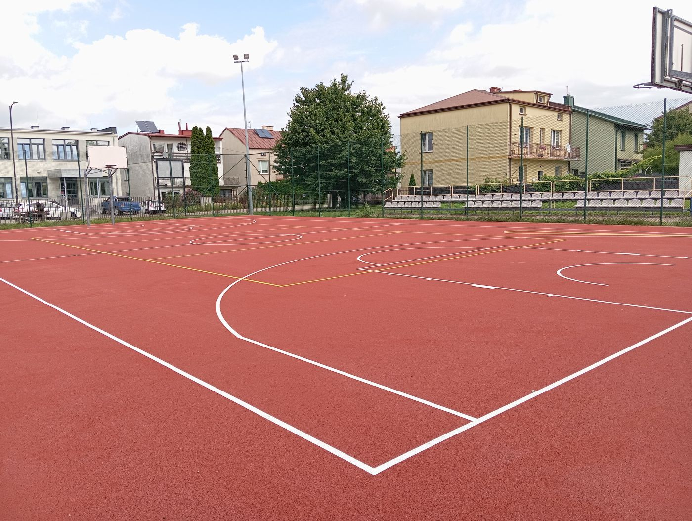 - Zaprojektowano i wykonano wymianę nawierzchni poliuretanowej na boisku do koszykówki typu „Orlik 2012”.