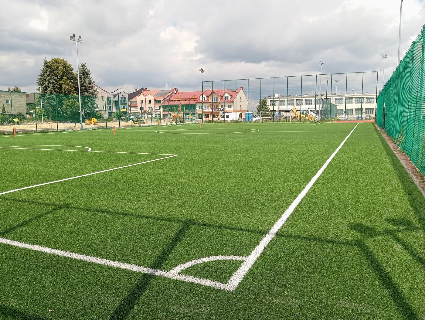 Dokonano wymiany nawierzchni ze sztucznej trawy na trawę syntetyczną na podkładzie e-layer wraz z zasypaniem (piasek + granulat EPDM).